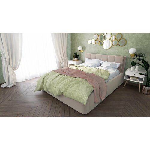 Кровать двуспальная 120x200 с мягким в изголовьем в скандинавском стиле, подъемный механизм, ящик для белья, без ножек MyCloud модель Милари