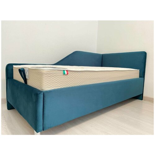 Кровать угловая односпальная, тахта, софа Норд 80x200 MyCloud, подъемный механизм, бельевой ящик, мягкая боковая спинка, без ножек, правый угол
