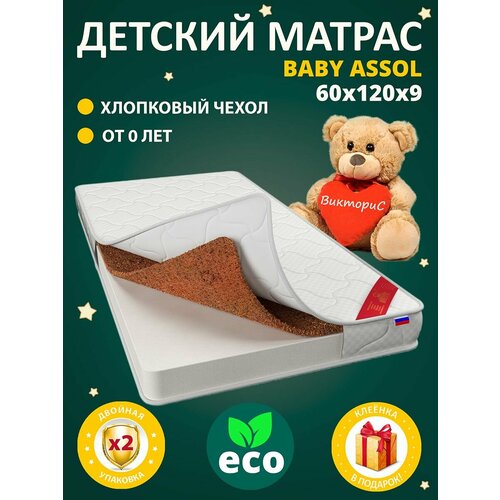 Матрас детский в кроватку Assol Кокосовая койра - несъёмный чехол 120х60 см.