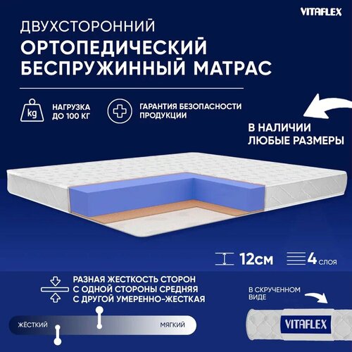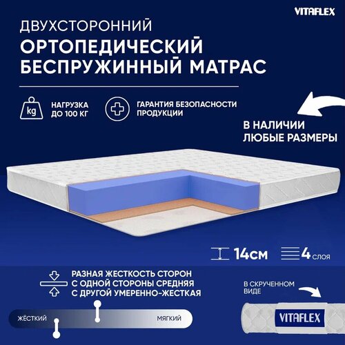 Матрас-топпер Vitaflex Soft Tricot 4x4Sk 1 кант 75х180, ортопедический, с резинками, на матрас или диван белый