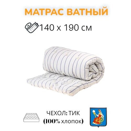 Матрас ватный РВ, тик 100% хлопок, Иваново 140х190, беспружинный, матрас для сна