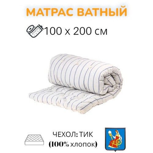 Матрас ватный РВ, чехол тик 100% хлопок, 100х200 см, матрас на диван, матрасы ватные, матрас беспружинный