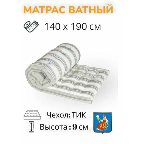 Матрас ватный РВ, тик, Иваново 140х190, беспружинный, матрас для сна