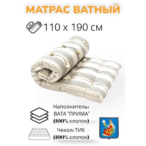Матрас ватный Прима - 100% хлопок, тик 100% хлопок 110х190, беспружинный, матрас для сна