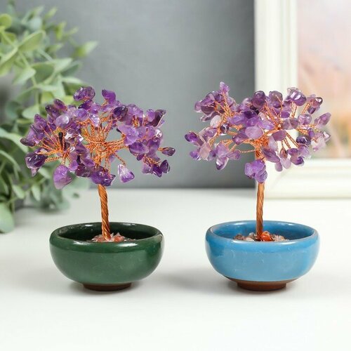 Сувенир керамика, металл, акрил "Деревце удачи в горшочке" под аметист микс