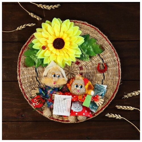 Домовой "Дед Ефим" на денежном сундуке, 18см.