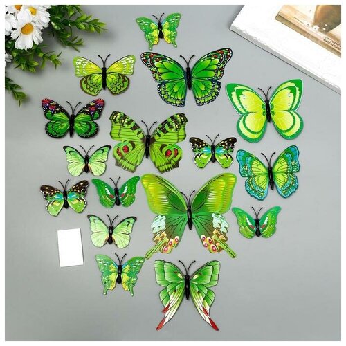 Магнит пластик "Бабочки зелёные" набор 12 шт