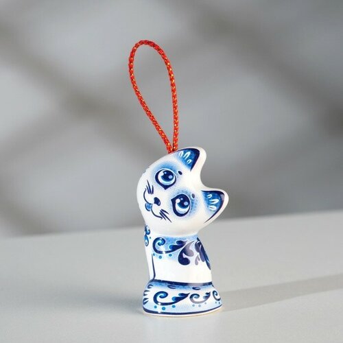 Сувенирный колокольчик "Котёнок" № 2, гжель , 6 см
