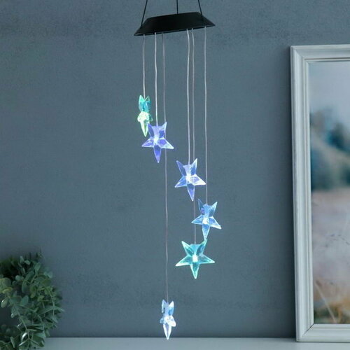 Музыка ветра с подсветкой от солнечной батареи "Звёзды-кристаллы" 13х13х55 см
