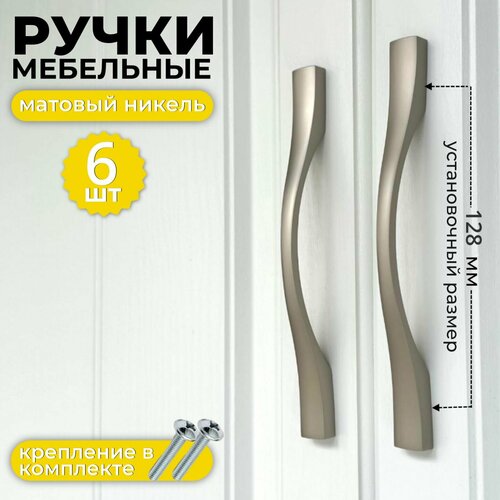 Ручка мебельная скоба, 128мм/163мм, цвет матовый никель, комплект 6 шт