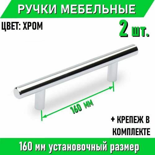 Мебельные ручки-рейлинг 160мм / 210мм, D12мм, хром 2 шт. + крепеж, полнотелые литые