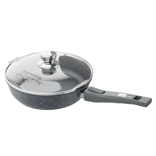 Сковорода Гранит со съемной ручкой и стеклянной крышкой алюминий с антипригарным покрытием 28см / сковородка для газовых и электрических плит /