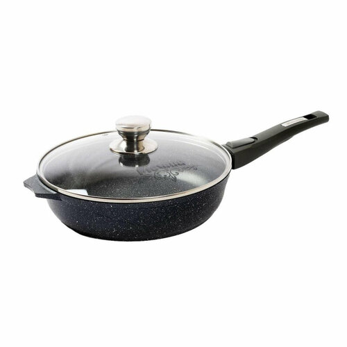 Сковорода Гранит black, лит. алюм АП, D28см со съем/руч и стекл. крыш с028802