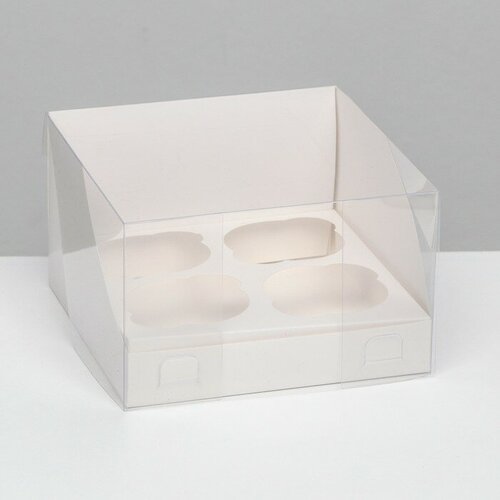 Кондитерская складная коробка для 4 капкейков, белая 16 х 16 х 10 см