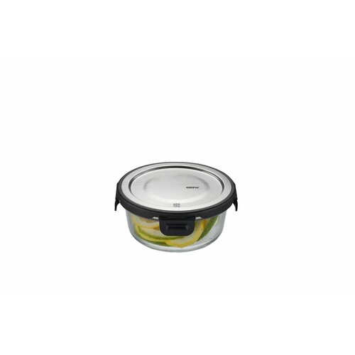 Контейнер круглый для пищевых продуктов мило, 16 см, 600 мл, боросиликатное стекло, нержавеющая сталь 12748