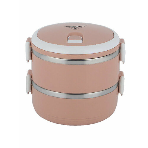 розовый2-ярусный термо ланчбокс, внутренний материал: нержавеющая сталь, внешний материал: пищевой пластик, размер 15*14 см, обьем: 1400 мл, количество отделений: 2, удобная ручка для переноски, устойчивость к температуре -20*С до +100*С, подходит для использования в холодильнике и морозильной камере, цвет: розовый. Подходит только для твердых продуктов!! НЕ разогревать на плите И В микроволновой печи!