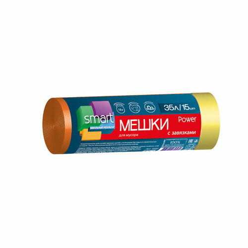 Мусорные мешки 35л/15шт с завязками оранжевые «Smart Power»