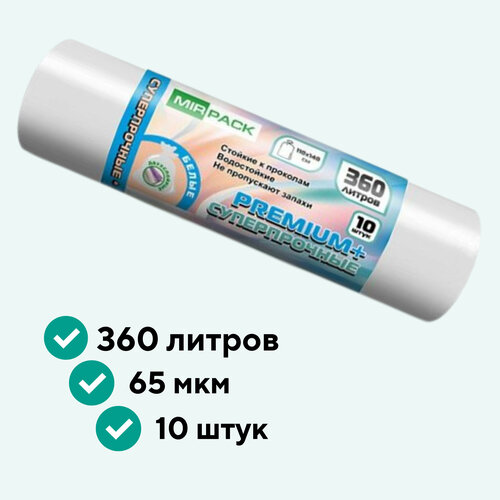 Мешки для строительного мусора 360 литров, 10 штук, двухслойные, ПВД, 65 мкм, размер 110*140 см, белые