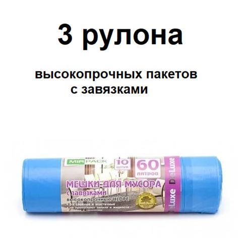 Мешки для мусора MIRPACK Deluxe высокопрочные с завязками 60 л, 10 шт., 3 упак.