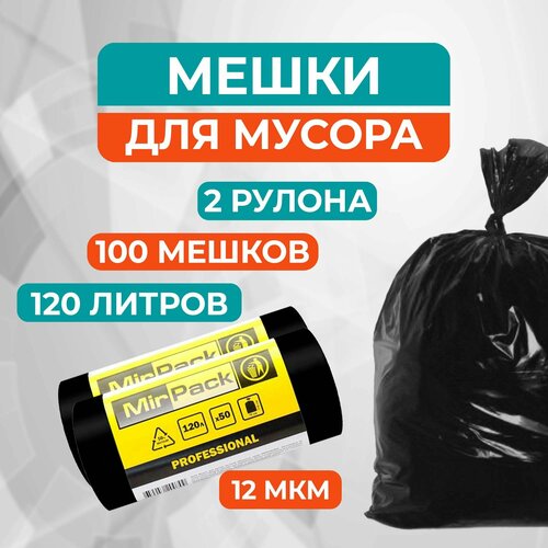 Супер прочные мешки для мусора MirPack (Premium +) 120 л, 40мкм, 2 рулона 20 пакетов