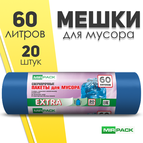 "EXTRA" 60 литров, в рулоне 20 штук, ПНД, 12 мкм, размер 60х70 см, синие
