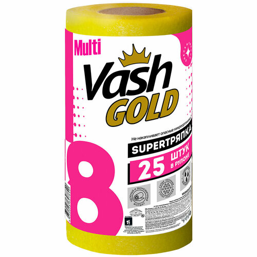 Тряпки для уборки многоразовые универсальные, салфетки для уборки, 38 листов/рулон, 120г/кв. м, Vash Gold
