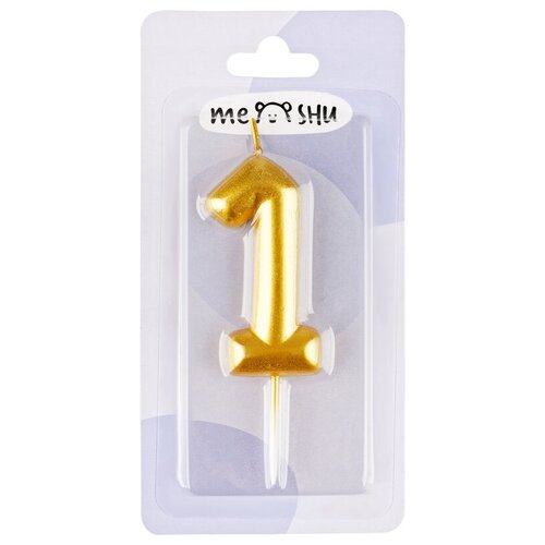 Свеча для торта с держателем MESHU "Цифра 1", 6см, золотая, блистер (MS_59891), 12 уп.