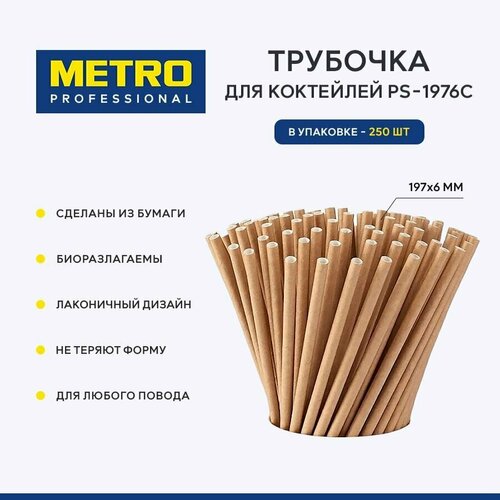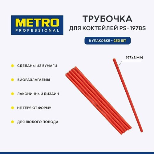 Трубочка для коктейлей Metro Professional PS-1978S, бумага, 250 шт, 197x8 мм