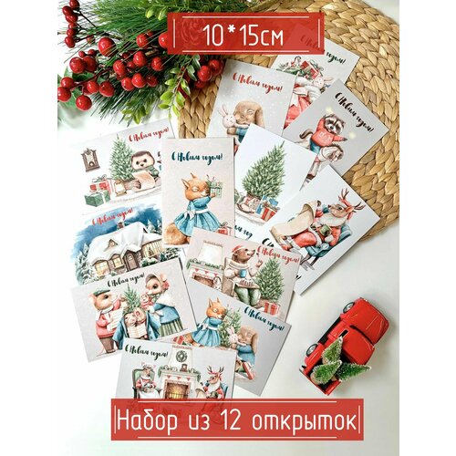 Miaworkstudio Набор праздничных новогодних открыток "Винтажный новый год", подарок-открытки на новый год, зимние, почтовые