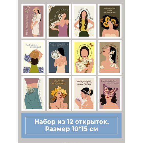Miaworkstudio Набор из 12 открыток на 8 марта праздничные, на подарок, сюрприз, к букету