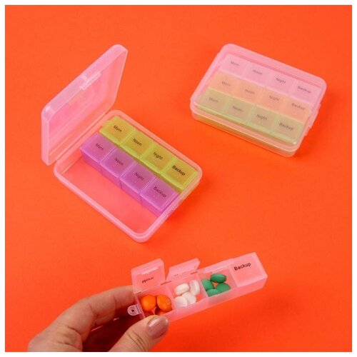 Таблетница-органайзер, английские буквы, утро/день/вечер/ночь, 3 контейнера по 4 секции, цвет микс