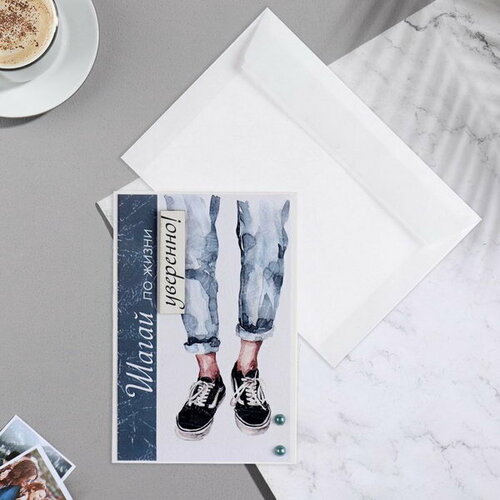 Открытка "Шагай по жизни уверенно!" ручная работа, кроссовки, 11.5х17 см