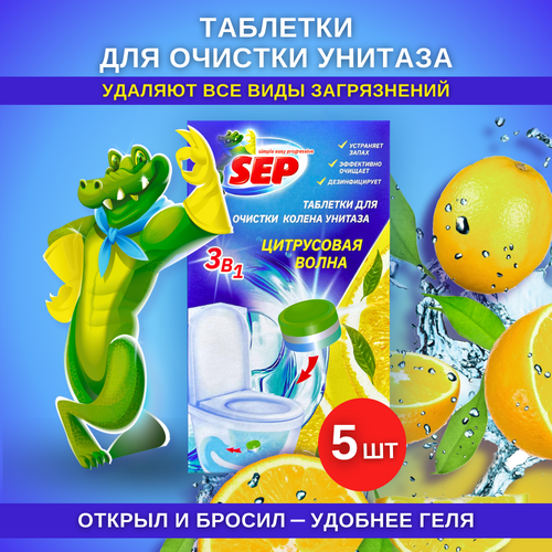 Таблетки для очистки колена унитаза SEP Цитрусовая волна 5 шт