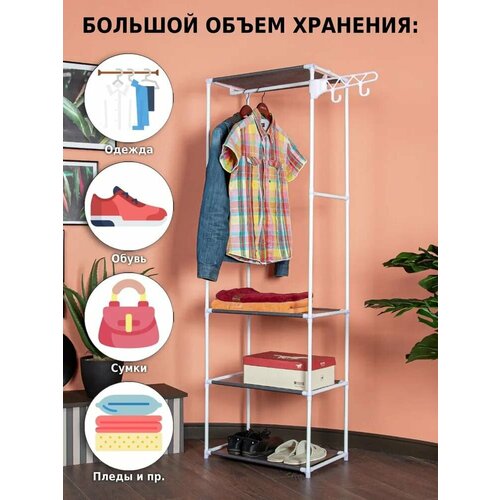 Вешалка стойка для одежды в прихожую и коридор напольная, шкаф рейл для балкона металлический обувница и полки