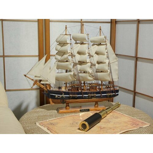 Размер модели парусника: 48х44х9 см. Все декоративные элементы воспроизводятся с детальной точностью относительно оригинала. Благодаря этому парусник позволяет познакомиться с обустройством судна. Много лет назад копии настоящих кораблей изготавливали ушедшие в отставку моряки, считалось, что уменьшенная копия становилась воплощением счастливой судьбы и удачи.