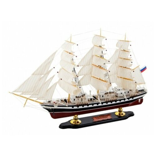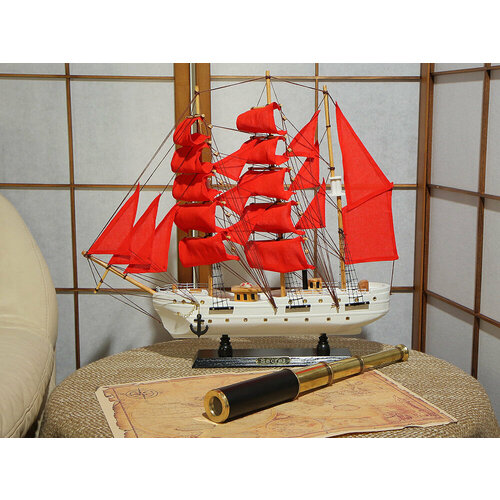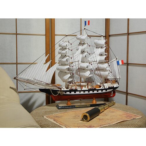 Размер модели парусника: 63х50х11 см. Все декоративные элементы воспроизводятся с детальной точностью относительно оригинала. Благодаря этому парусник позволяет познакомиться с обустройством судна. Много лет назад копии настоящих кораблей изготавливали ушедшие в отставку моряки, считалось, что уменьшенная копия становилась воплощением счастливой судьбы и у