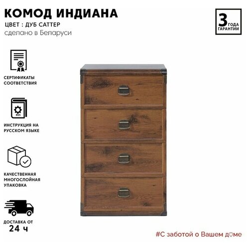 Комод БРВ-мебель Индиана JКОМ 4s/50 , размер: 50х40 см , цвет: дуб саттер