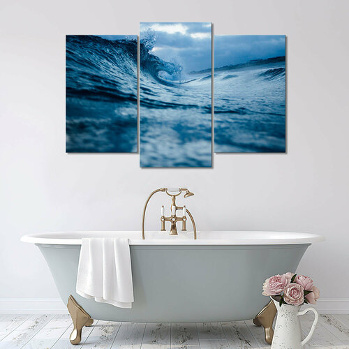 Модульная картина/Модульная картина на холсте/Картина на кухню/волна на закате-a wave at sunset 90х60
