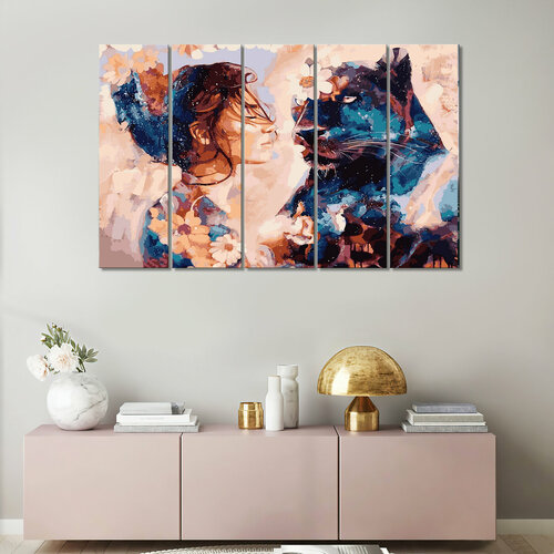 Модульная картина/Модульная картина на холсте/Модульная картина в подарок/ Девушка и пантера - The Girl and the panther 125х80