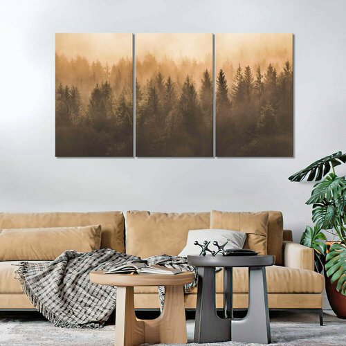Модульная картина/Модульная картина на холсте/Модульная картина в подарок/ оранжевый лес в тумане-orange forest in the fog 90х50