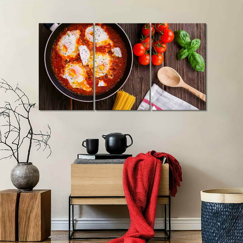 Модульная картина/Модульная картина на холсте/Модульная картина в подарок/яичница с помидорами-scrambled eggs with tomatoes 90х50