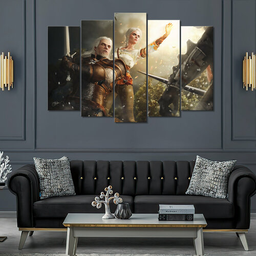 Модульная картина/Модульная картина на холсте/Модульная картина в подарок/Geralt and Cirilla The Witcher - Геральт и Цирилла Ведьмак 125х85