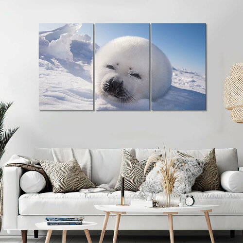 Модульная картина/Модульная картина на холсте/Модульная картина в подарок/детёныш тюленя-baby seal 150х80