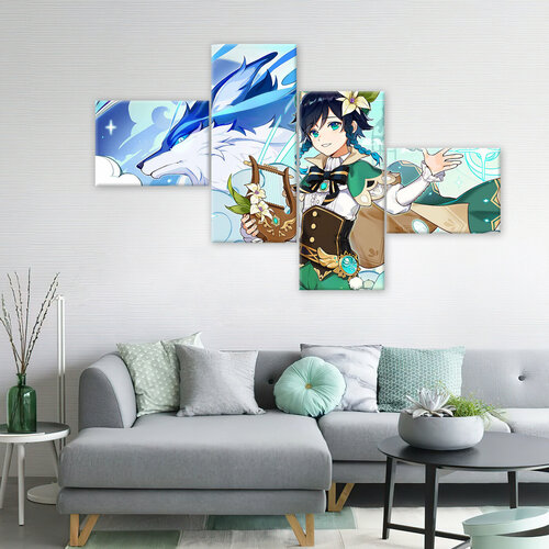 Модульная картина/Модульная картина на холсте/Модульная картина в подарок/Venti and blue fox - Венти и синий лис Genshin Impact 140х85