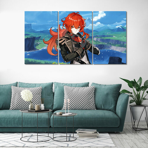 Модульная картина/Модульная картина на холсте/Модульная картина в подарок/Diluс Monstadt Genshin Impact - Дилюк Монштадт Геншин Импакт 150х80