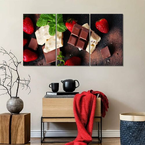Модульная картина/Модульная картина на холсте/Модульная картина в подарок/ шоколад с клубникой-chocolate with strawberries 90х50