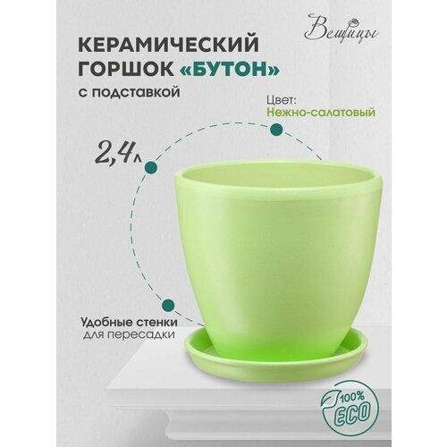 Кашпо Вещицы c поддоном Бутон, 2.4л, 17.5x15.8 см, 17x17x15.8 см