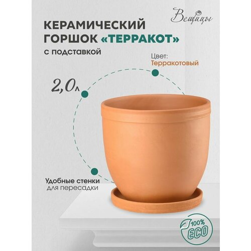 Горшок Вещицы с поддоном Терракот, 1л, 13.8x13 см, 14x14x13 см, терракотовый