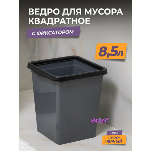 Мусорное ведро для кухни 8,5л с фиксатором квадратное, цвет серый / контейнер для мусора для туалета