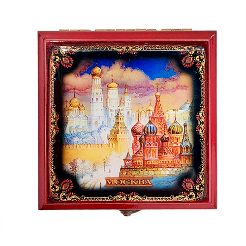 Деревянная шкатулка, обшитая бархатом "Москва", с зеркалом